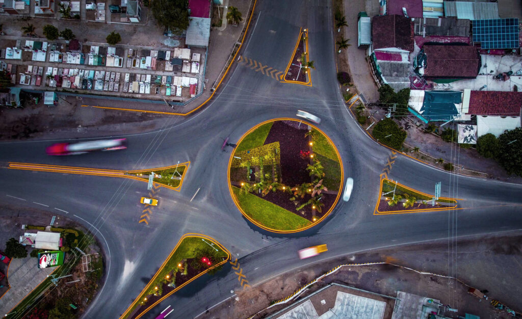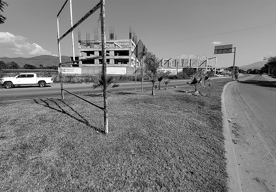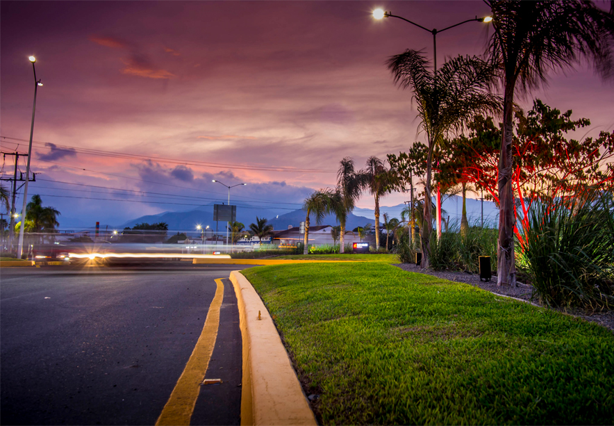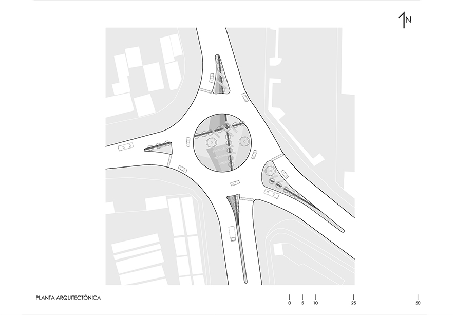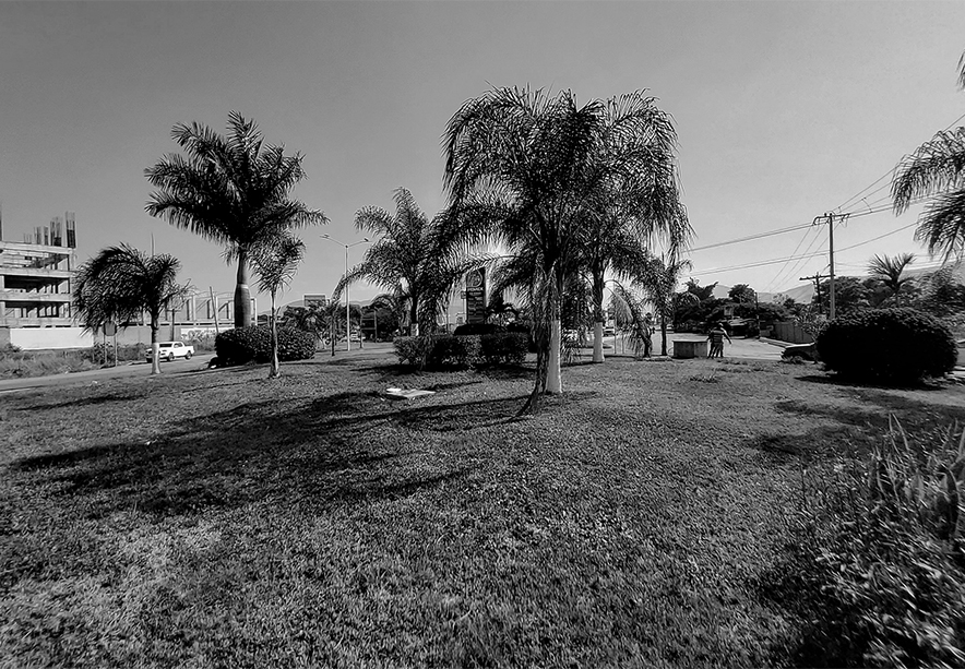 Al observar nuestro entorno encontramos la inspiración en los surcos de los variados sembradíos de la región y su alineamiento que genera un efecto en perspectiva que direcciona la mirada así que partiendo de la vegetación ya existente compuesta principalmente por palmeras, creamos una composición de vectores lineales que, desde cualquiera de las calles que allí convergen, nos limpian la visual logrando un flujo muy intuitivo. Así logramos embellecer este punto referente en la ciudad.