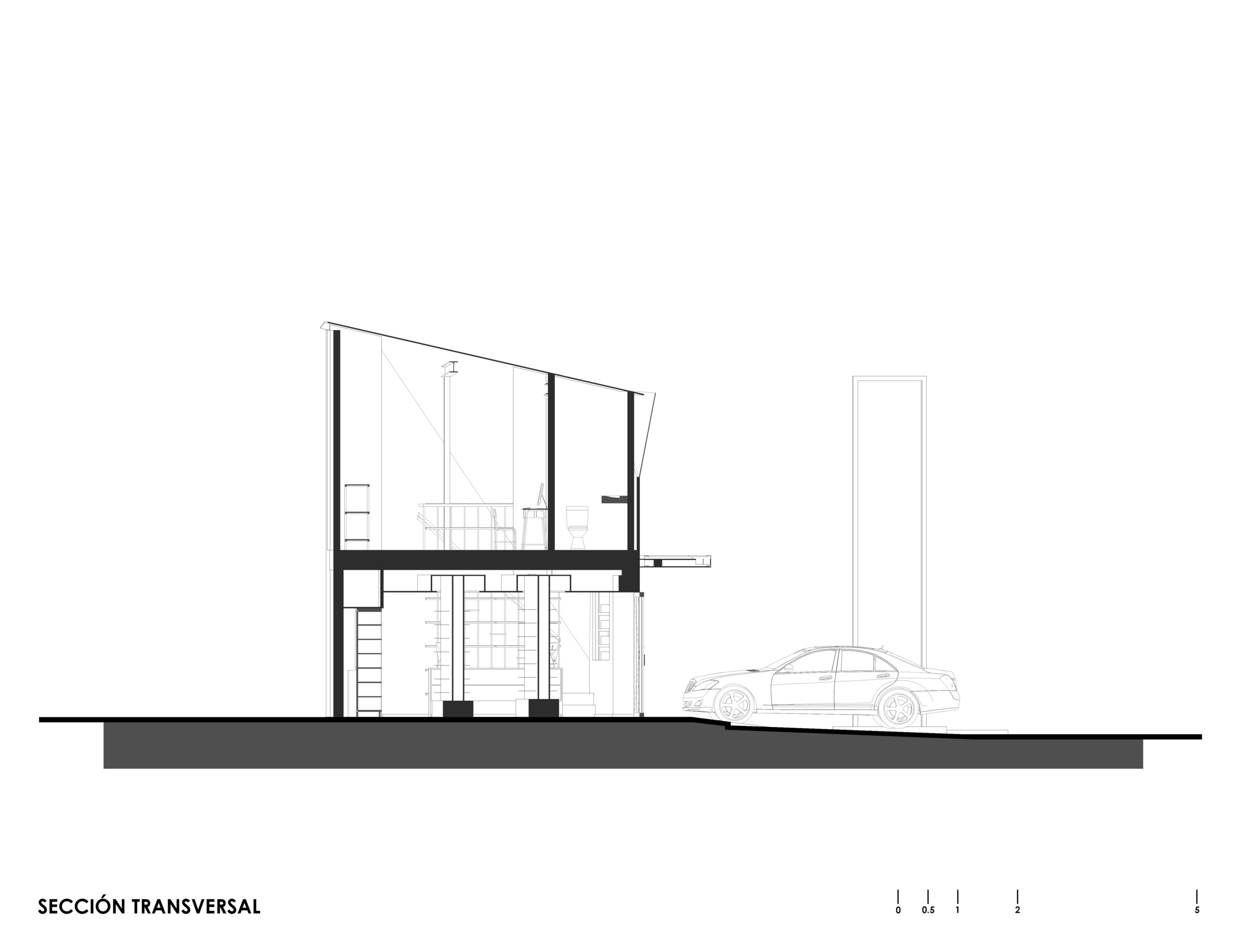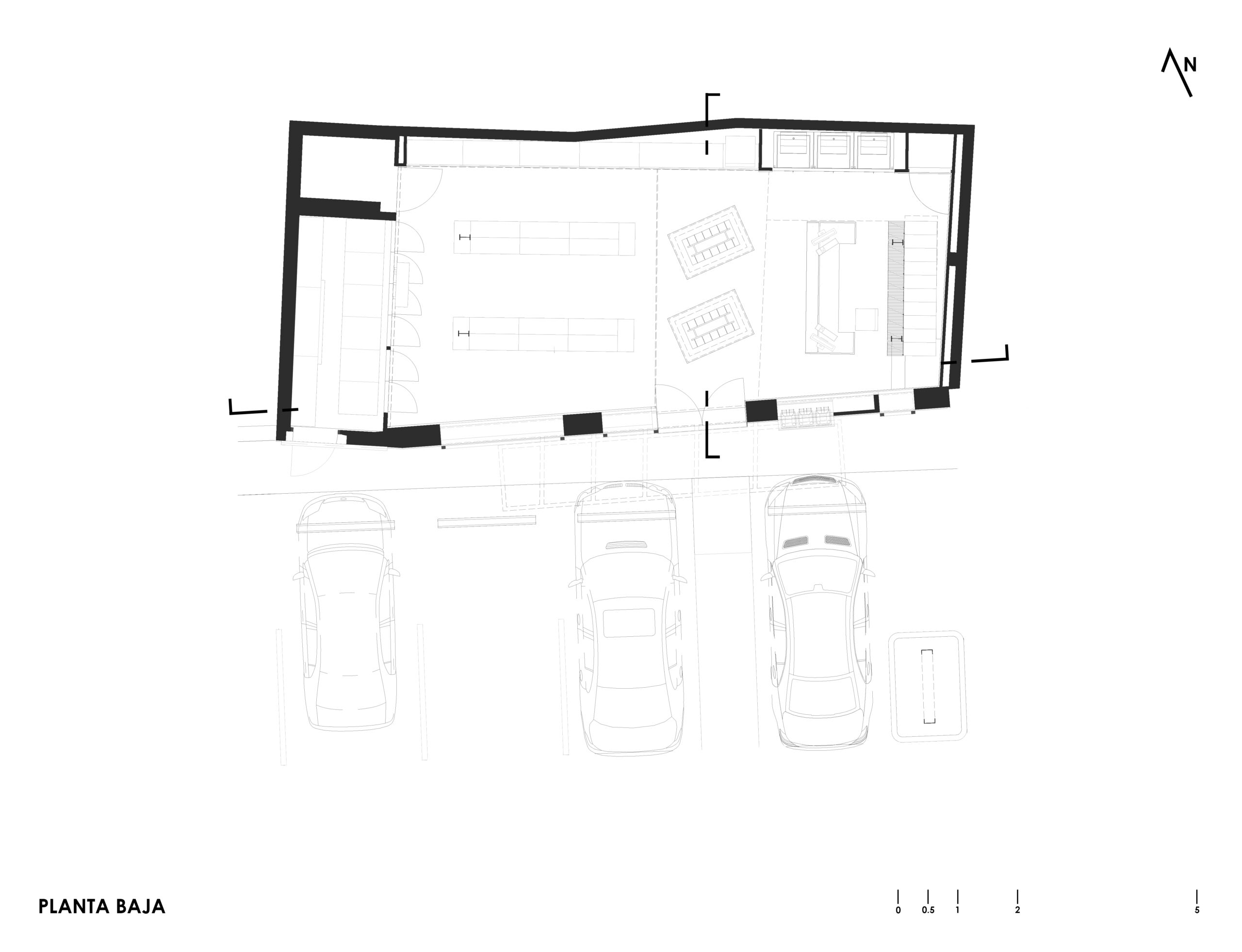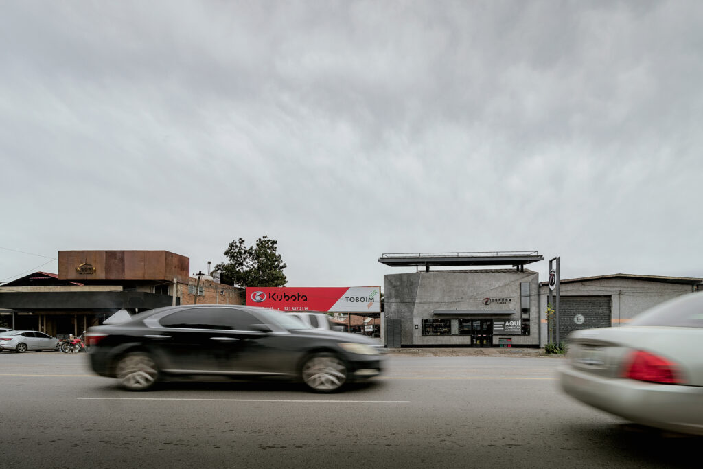 Resolvimos el proyecto pensando en el contexto al que se enfrentaría, considerando la contaminación visual y auditiva, el tráfico de la zona a la velocidad en que se percibiría, además de solventar los requerimientos físicos de la tienda, atiende y propone una estrategia comercial, respondiendo a la necesidad de distinguirse en el contexto, contrastando, captando la atención; con intención de economizar formal y materialmente siendo un volumen irregular prácticamente ciego que contiene la exhibición del producto.
